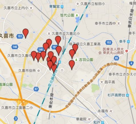 特徴として、駅の西口に集中しているのがわかります。何で偏って集中しているんだろ?