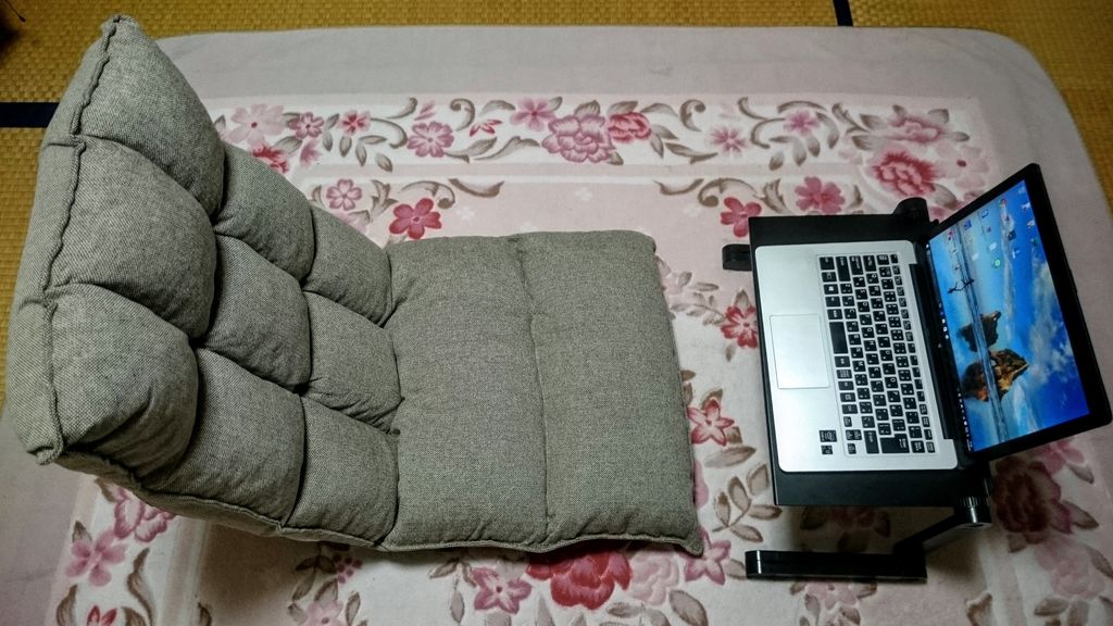 少し前にノートPC用の変わったテーブルを購入したのですが、昨日奥さんに座椅子をプレゼントしてもらいました。今後は、くつろぎながらブログが書けます