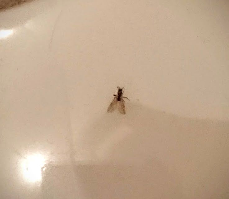 電球に逃げ延びたのが1匹いたので、写真を撮りました。見たところ体長3ミリ位なのでハエのように見えますが羽がやたらと長く行列で歩くとの事ですのでアリ系かと思います。