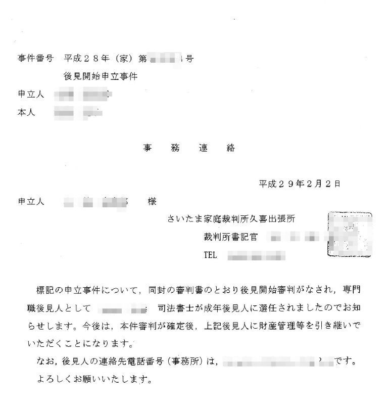 「裁判所から後見人が決まったって通知が来ましたよ」