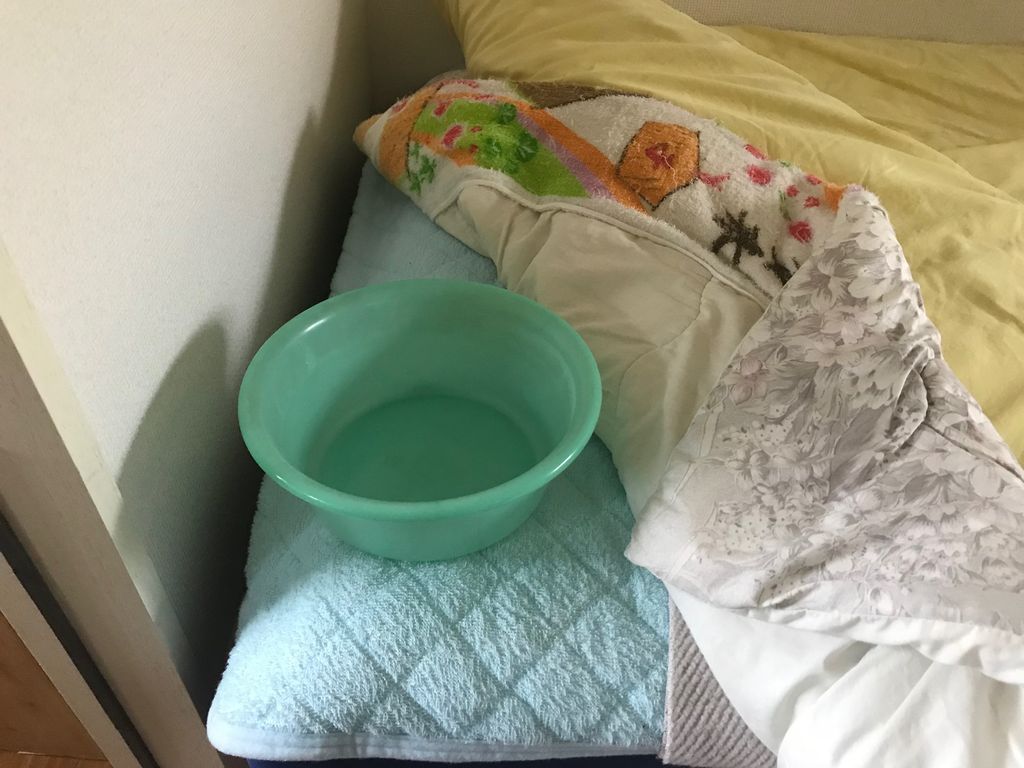 Aさん 「はい、ベットの位置をズラして洗面器で雨水を受けますよ」