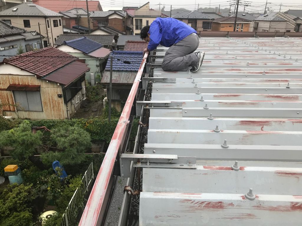 午後になって、ちょうど雨が止んでいる時に管理課S君と屋根に登ってみました。