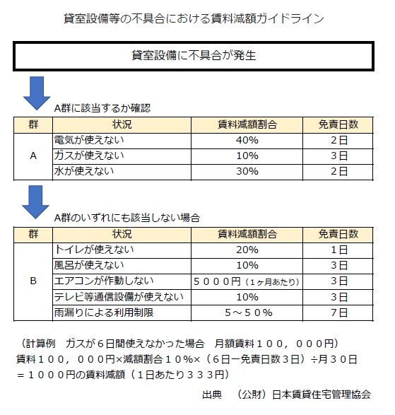 ちょっと話がズレますが、書籍第2弾に掲載する参考資料として、設備不具合における資料減額ガイドライン(詳細は別の機会にネタにします)の引用許可を日管協さんにお願いした際、良い言葉を聞きました。(追記)2019年 6月17日 表を新しいタイプに変更しました。