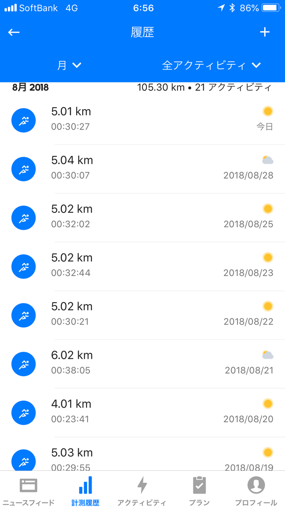 プライベートでは8月の目標であった、ランニング100kmを28日に達成しましたので、来月は120kmに伸ばすか、そのまま100kmに据え置くか検討中です。