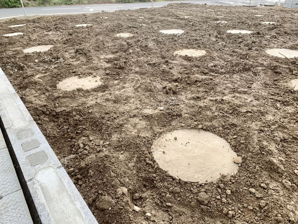 昨日は3区画のうち2区画まで穴あけマシンでの杭の打設作業が完了していたので、あと1区画終われば工事ストップの恐怖から解放されます。地中埋設だけが不明な場合、信用できる買主さん相手なら決済前に着工してもらった方がドキドキの度合いが軽減されて良いと自分は思ってます。