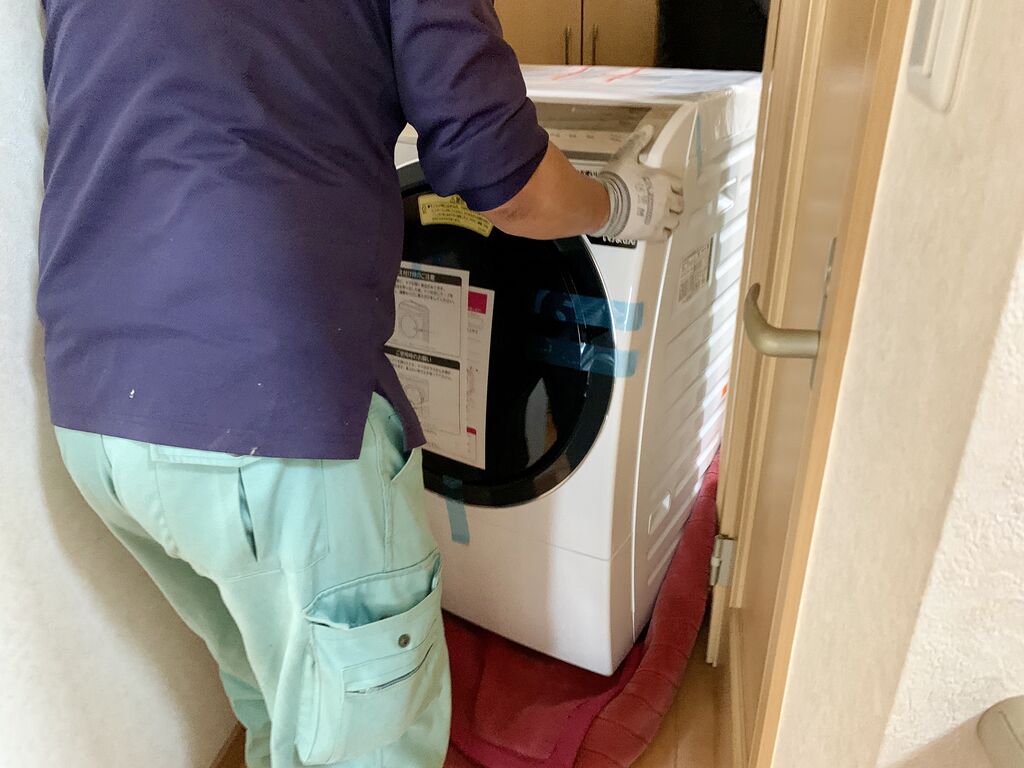 考えているうちに電気屋さん到着。電気屋さんの話だとドラム式の場合、容量11kgタイプまでなら大体60センチ幅なので、大抵の家は大丈夫とのこと。