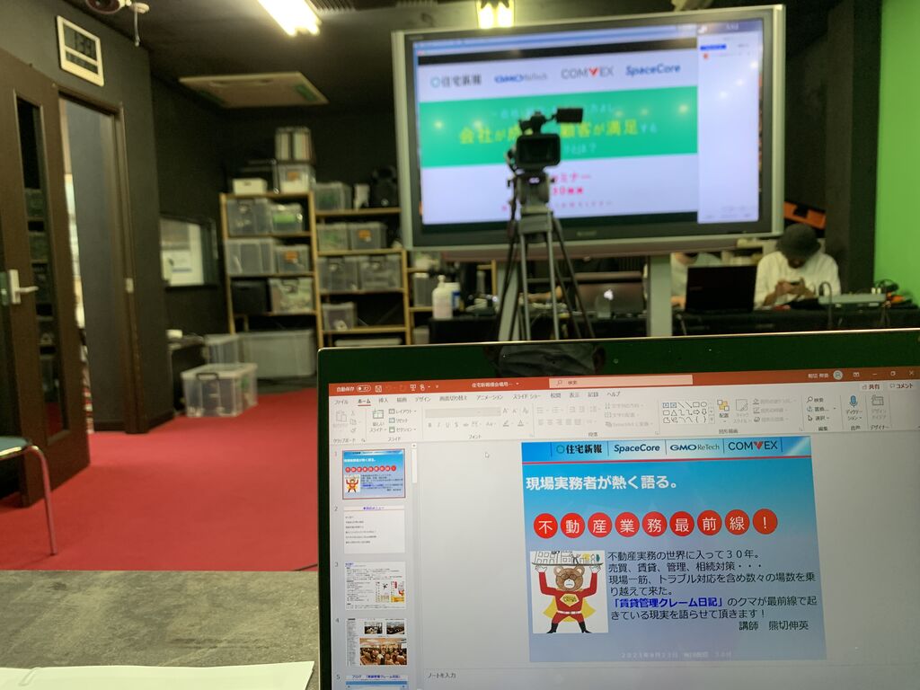 昨日は8月23日(月)に実施される予定の住宅新報さん主催の不動産DXセミナーのリハーサルでさいたま市のパンダスタジオさんへ行って来ました。「背景と一体化するので緑色系の服だけは着て来ないで下さい」とのことくらいしか注意されない訳ですが、プロの人にサポートしてもらえるってのはホント安心です。