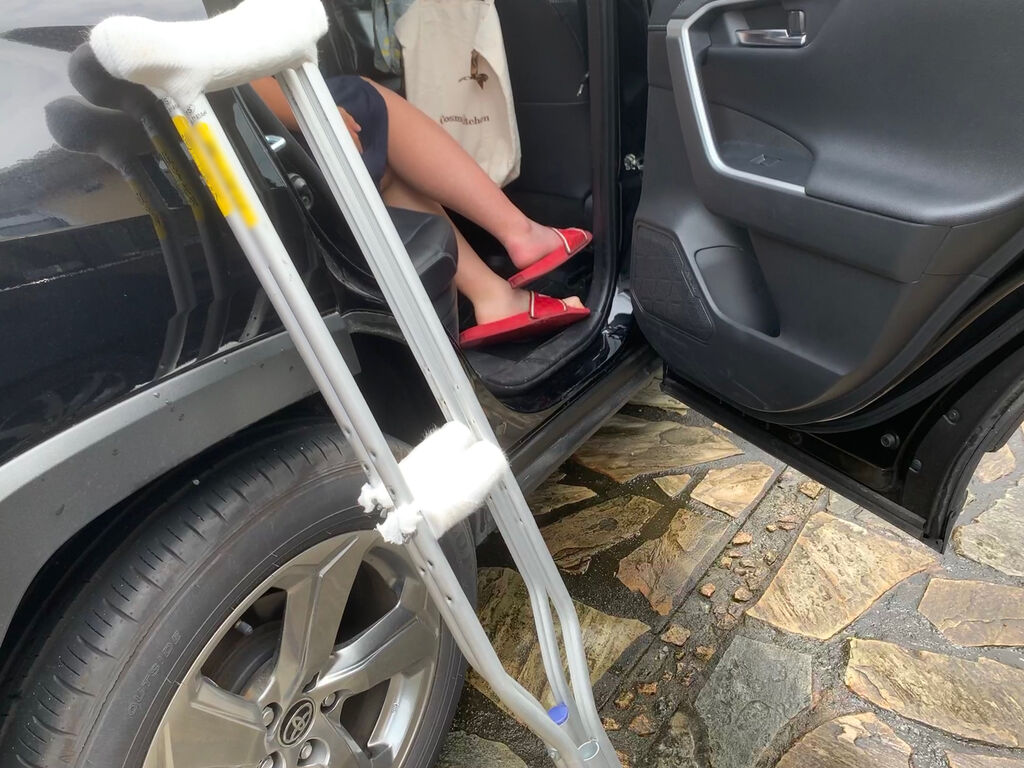 電車通学なので、さすがに朝の時間帯で松葉杖は危険だと思いますから車で送り迎えが必要になるかも知れません。