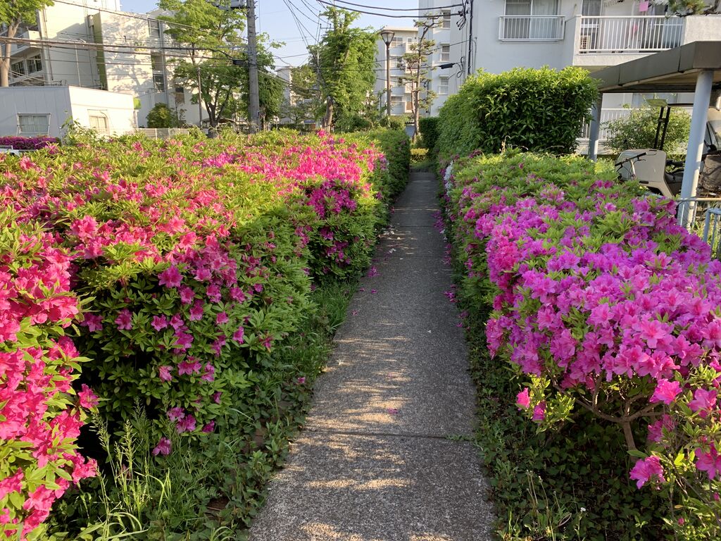 団地系で凄いと思うのは、緑地の設計です。大きな通りから人がすれ違えないくらい細い通りまで設計されて、その通りに植栽が植えられているのでしょう。