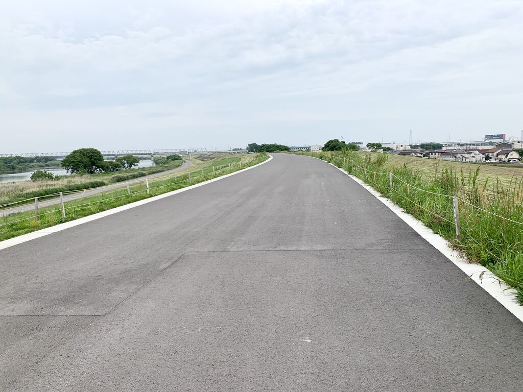 堤防の上はしっかり舗装された道になっていて、堤防の管理車両しか通らない道かと思いますのでウォーキングやランニングにピッタリです。地図で見ると相当長い距離舗装された道が続いていますので、そのうち走りに行きたいと思いました。