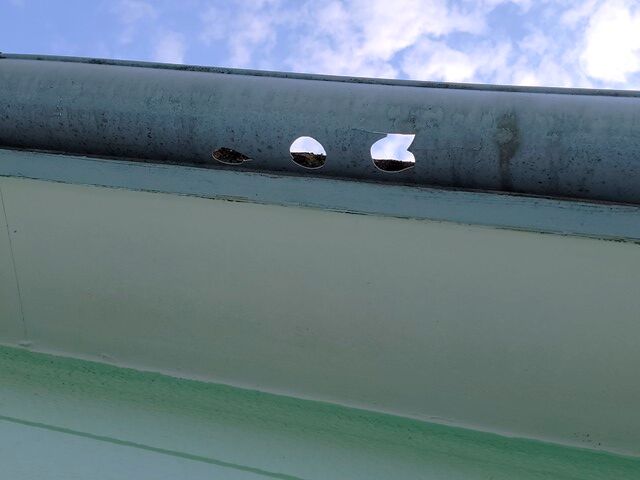 なので、基本的にアパート・マンション系の共用部分に関しては雹で穴が開いた程度では通報されないのが原則だと思った方が良いと思います。もっとも、雨どいの穴に関しては大雨が降った際に滝が出来ることで連絡が来るオチが出来ますので通報を待たずに発見して修理するのが一番なのでしょう。