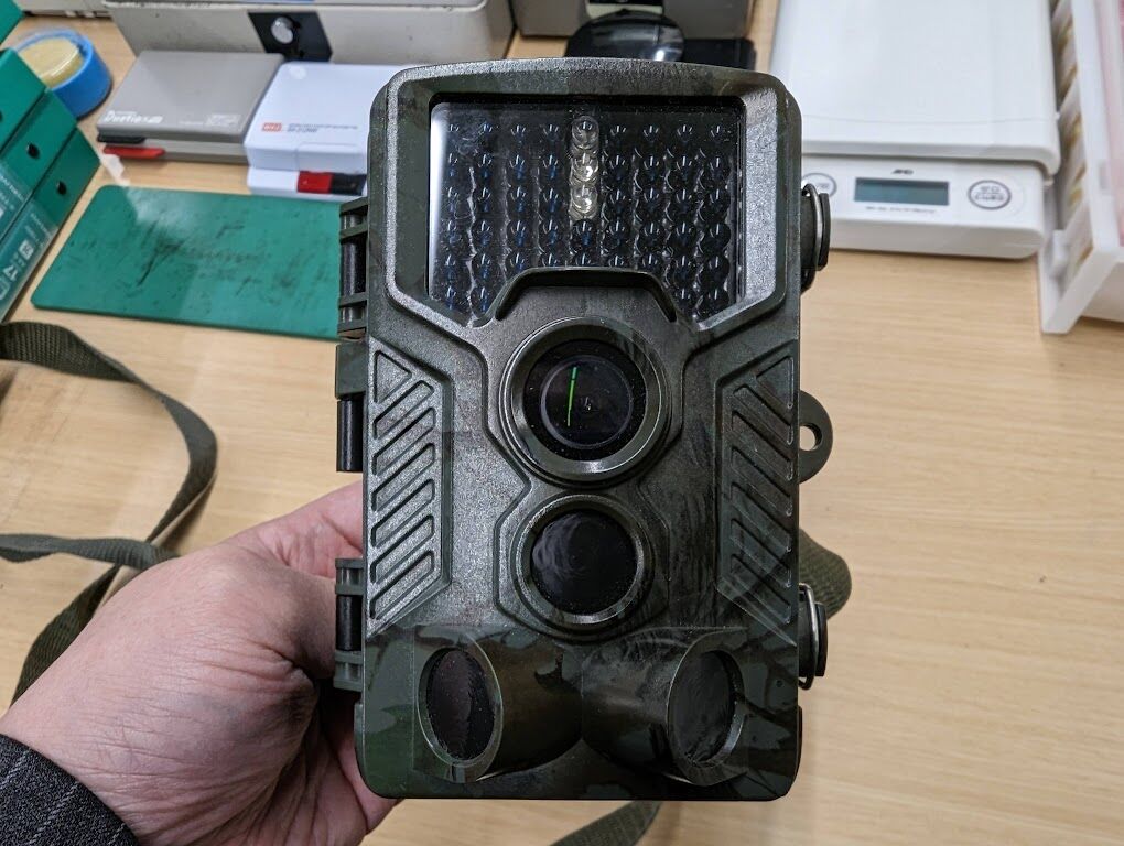 で、とりあえず以前使ったことのあるトレイルカメラを試してみることにしました。乾電池式で人の動きに反応して動画撮影してくれる便利なタイプなのですが、欠点は隠して設置しないと盗まれるということです・・・