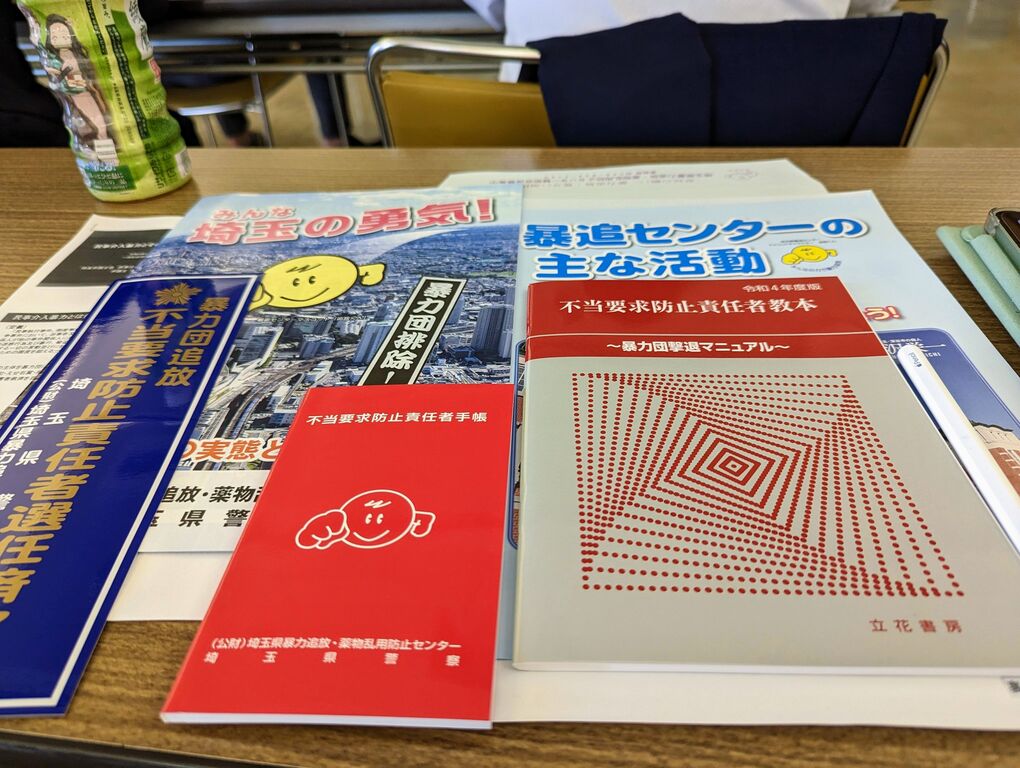 各都道府県にある暴力追放センターで実施している暴力団や不当な要求をしてくる相手に対応するテクニックを教えてもらえる素晴らしい研修で、約3時間の講義でそのエリアの暴力団等反社会的勢力の活動の様子を教えてくれたり、詳細な資料とリアルすぎる再現ビデオで疑似体験させてもらえます。