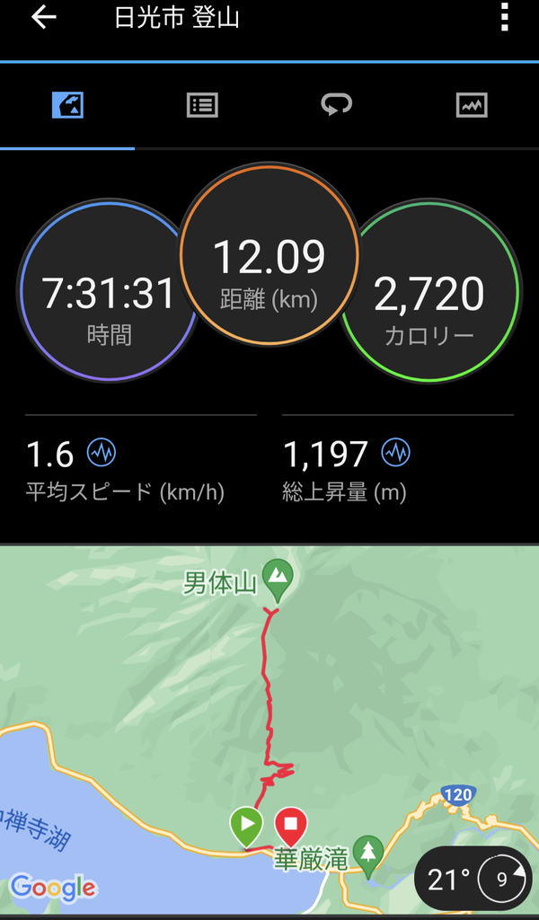 下山に3時間半掛かっていて合計7時間30分の登山でした。