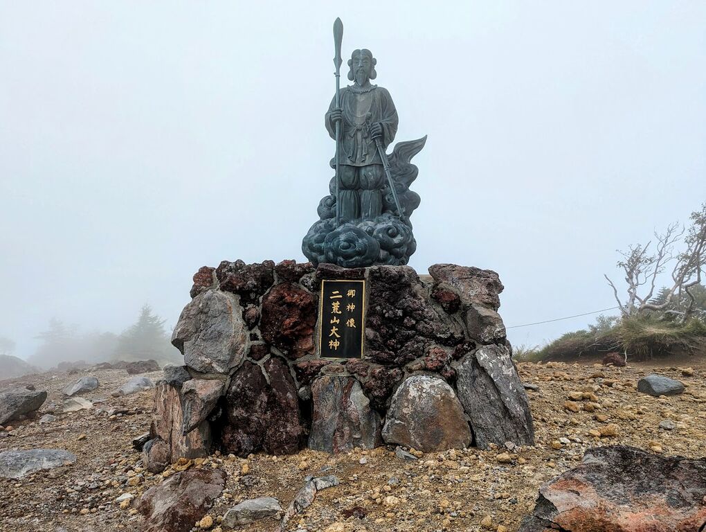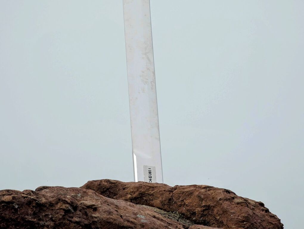 山頂には岩から突き出した有名な奥宮の剣があります。伝説では群馬県にある赤城山の化身である大ムカデと男体山の化身の大蛇が戦ったとのことで、赤城山に向いているらしいです。