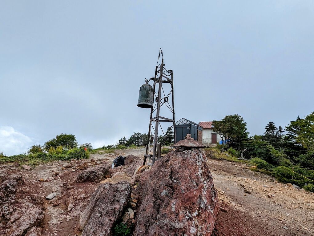 この段階で15時20分くらいでしたので、登山客のピークはとっくに過ぎていて自分以外には5名だけが山頂にいました。鐘を鳴らさせてもらった後は、日が暮れる前にと急いで下山。