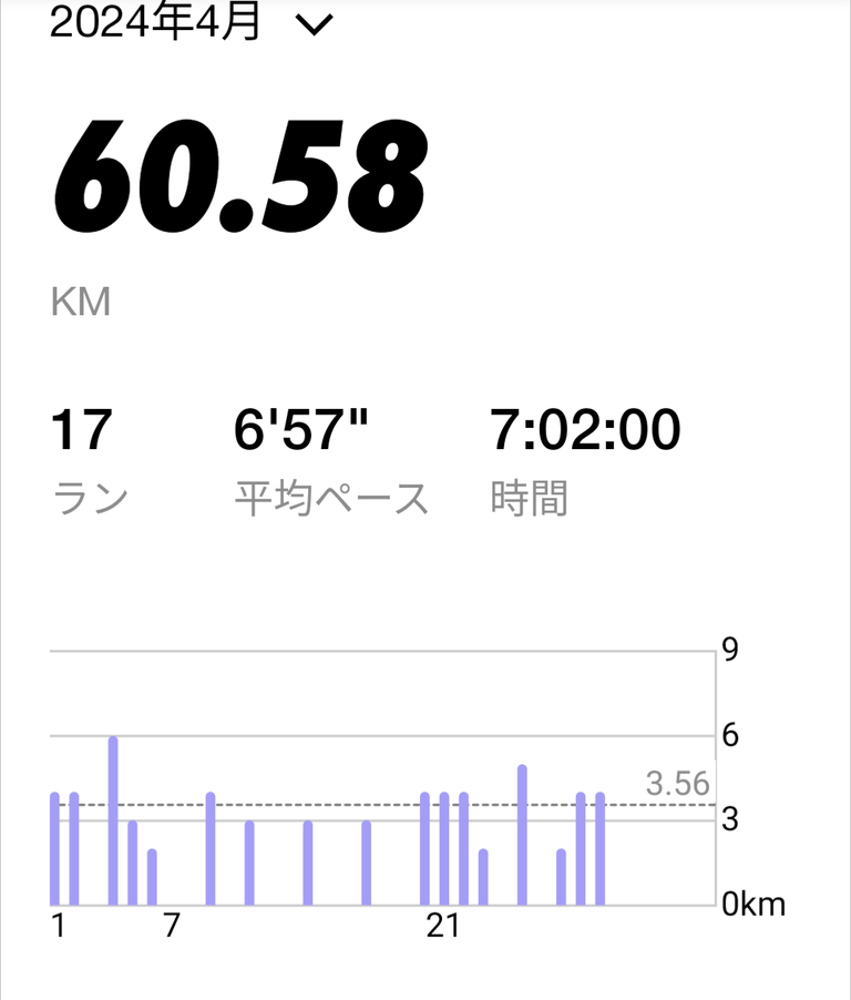 3月はサボりの日が多くて月間35kmでしたが、4月は飲み会が7回あったのと雨の日に走れなかった感じです。しかしながら、そう言った日以外はサボらずにイイ感じに習慣化し始めてきている気がしています。