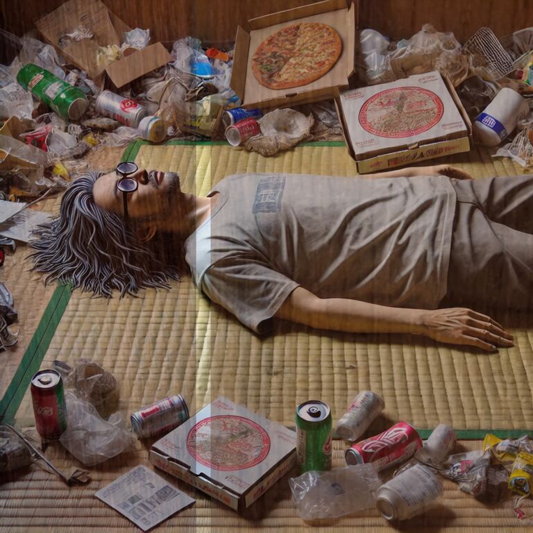 恐らくはこんな感じで寝ているのでしょう。これは実写では無くChatGPTの想像イラストと壁の写真の合成ですが、いろいろ応用が出来そうです。