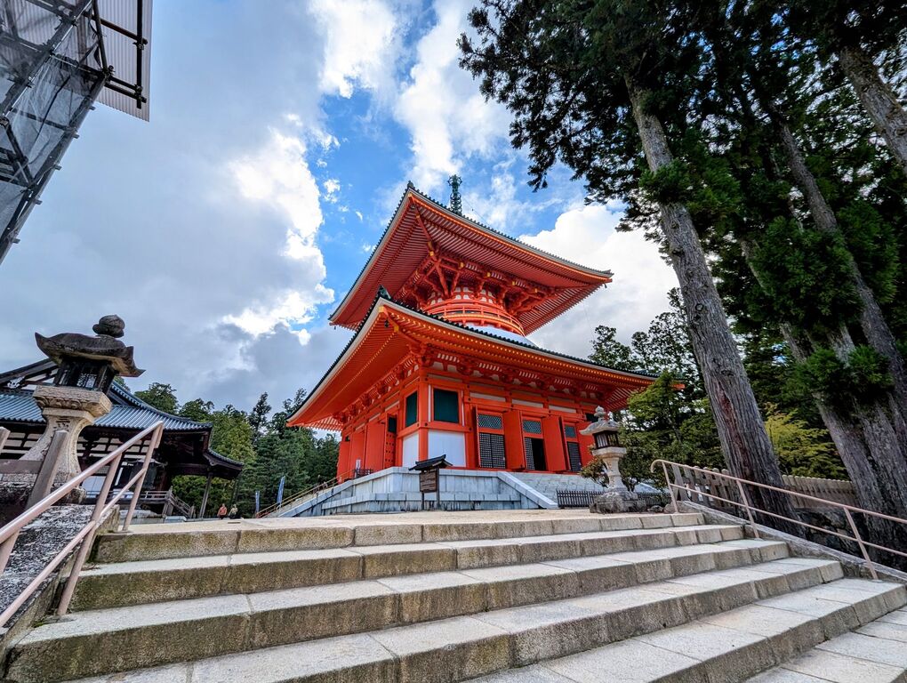 巨大な壇上伽藍(だんじょうがらん)を見学。写真だとわかりにくいですが、高さ48.5mですので15階建てのマンションと同じくらいの高さってことです。