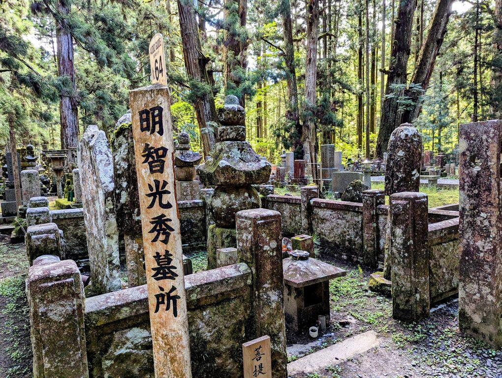 高野山には奥の院と言う2kmに渡る森の中の墓地群があります。