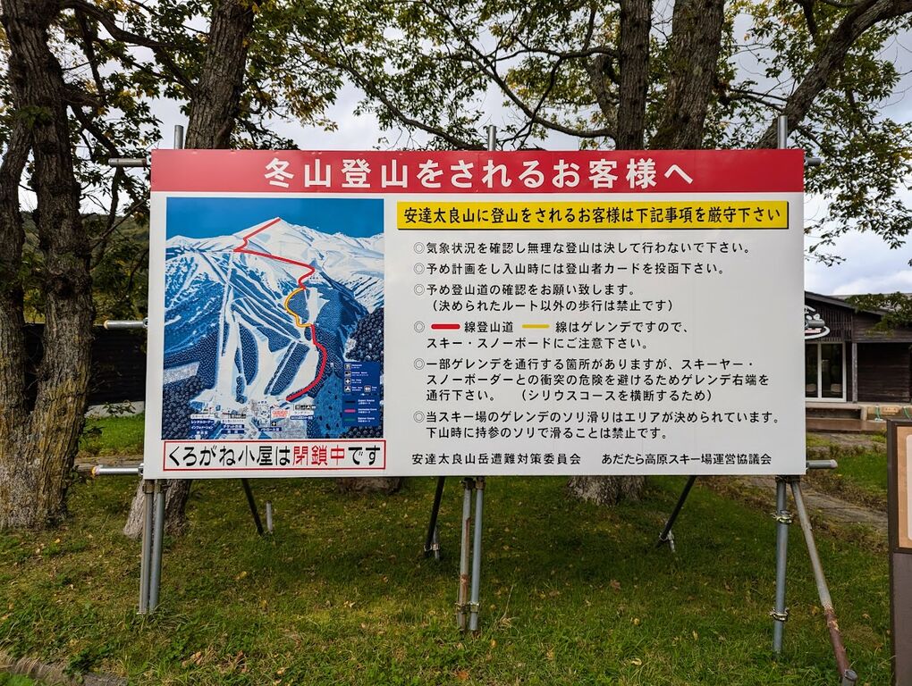 あの経験があったから冬山へは絶対に行かないとの教訓となっていた。今回、安達太良山の登山口に冬山登山者に向けた注意看板がありましたが、安達太良山は冬山登山のコースとしても有名な山だったのだと気がつきましたよ。