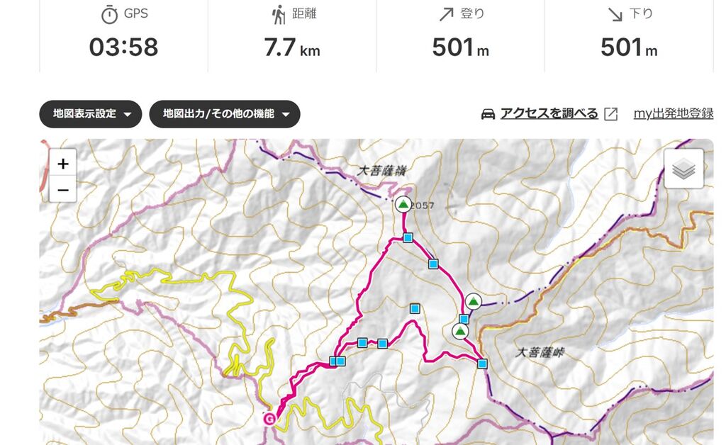 森の中を歩くのが好きなら問題ないのですが、見晴らしを求めるなら大菩薩峠から雷岩の尾根部分が見どころなのかと思います。ちなみに最高地点の大菩薩嶺(標高2,057m)は森の中で見晴らしが無かったです・・・