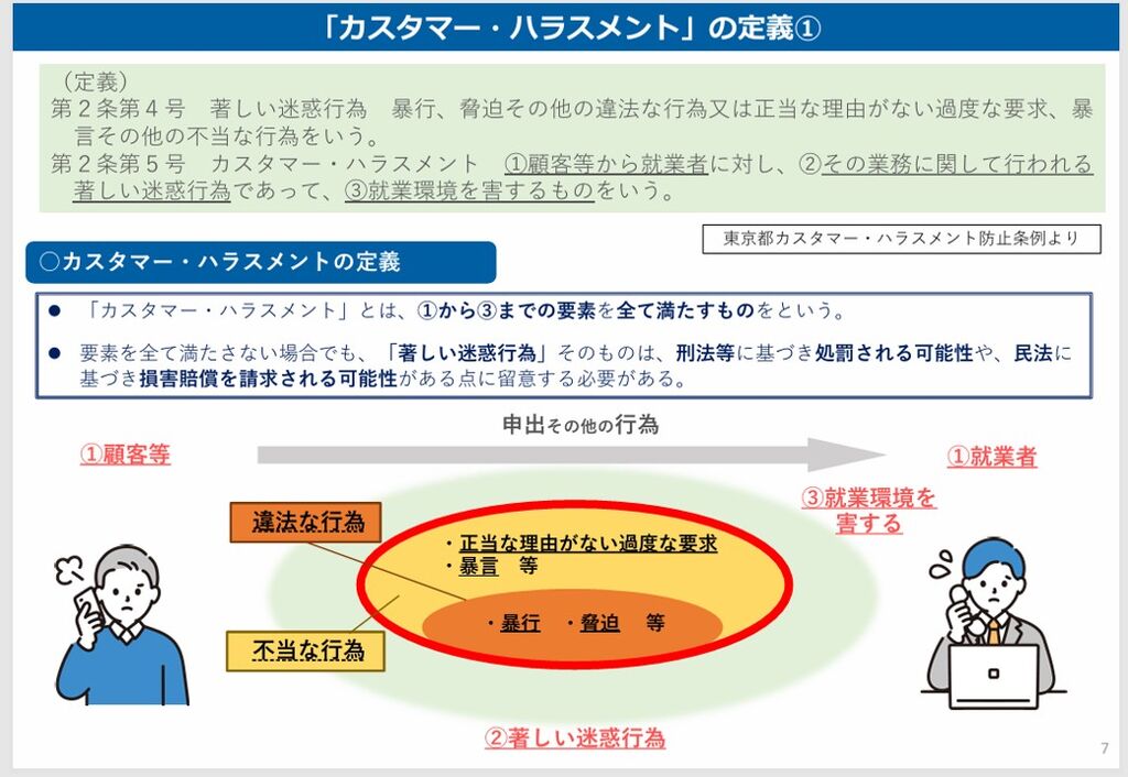 実は去年の春にも同じような題材で語らせて頂きましたが、今年は4月から全国に先駆けて東京都でカスタマー・ハラスメント防止条例が施行されることに関連して対策の検討段階から実際の運用に移行する準備が完了した段階になってきています。