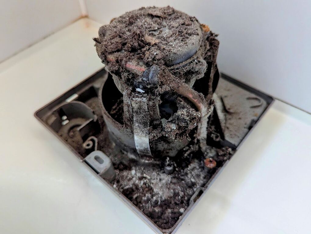 換気扇の目で見える部分はブラシを使って掃除していましたが、更にその奥はホコリまみれと言うか泥まみれの状態。