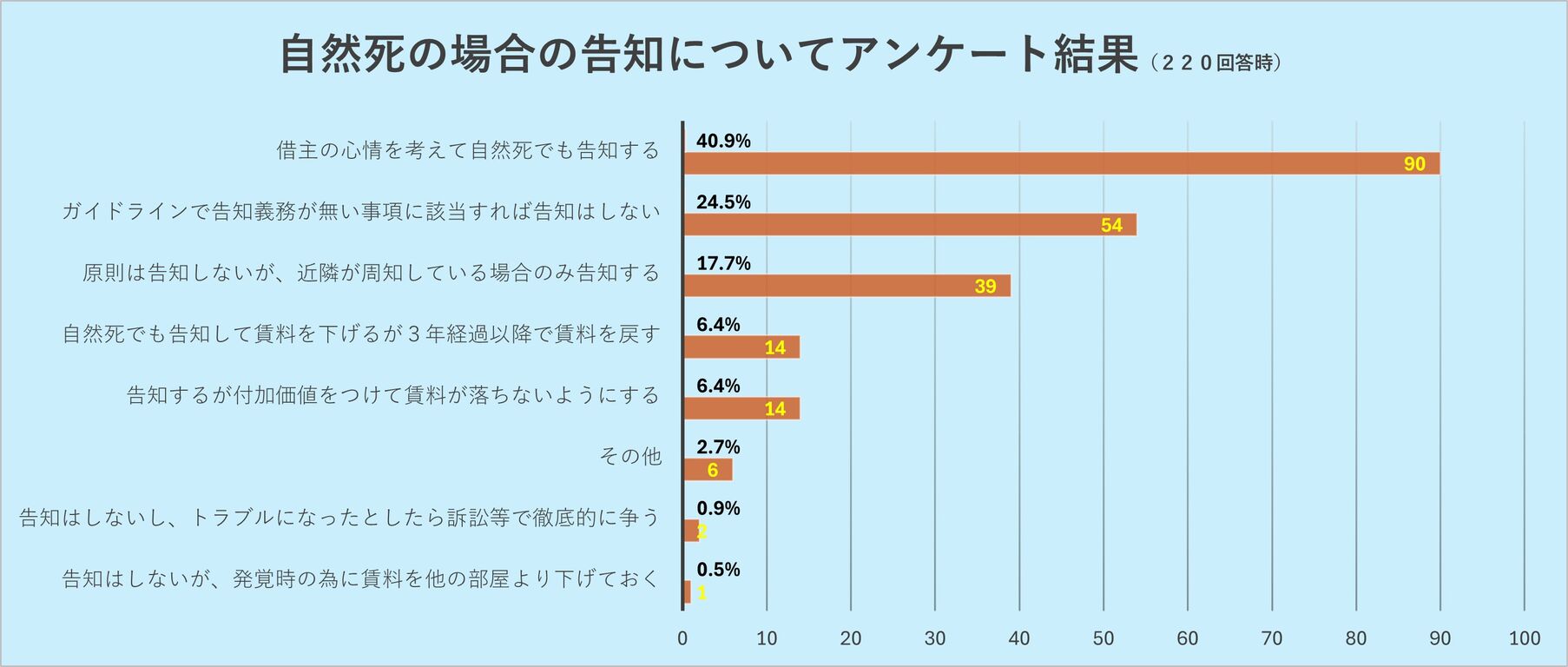 今回のアンケートに関しては「告知をするか否かの判断の質問」なので、恐縮ですが仲介・管理業者の方と大家さんからの回答でお願い致します。
