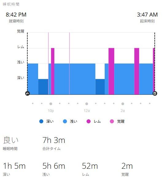 自分は寝ている時もスマートウォッチを付けていて睡眠の質に関して情報が取れるのですが、普段は睡眠の質が「悪い」との判定ばかりなのに久しぶりに「良い」との判定をもらえました。