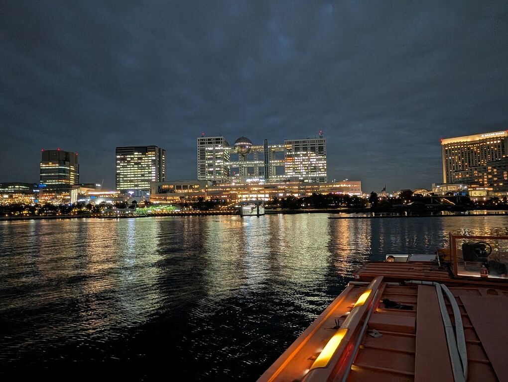 お台場周辺で錨を下ろして夜景観賞。曇り空の1日でしたが、夜景はバッチリ見えるものです。