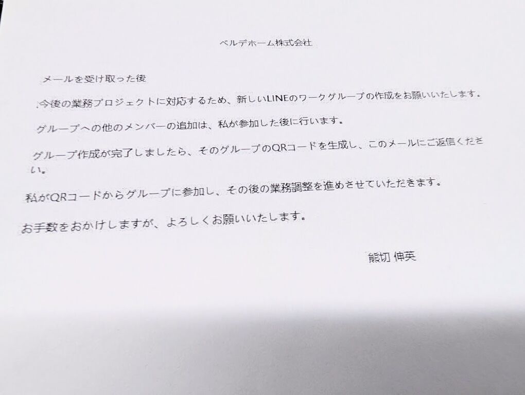 そんな状態だったのですが、当社に来たのは通常のメールからLINEのグループ作成に誘導するタイプ。当社では仕事用にLINEを使っていないので引っ掛かることは無かったのですが、自分の名前を載せてもっともらしい内容を送ってくるなんてのは実に気分が悪いものです。